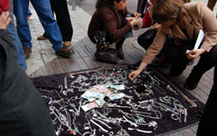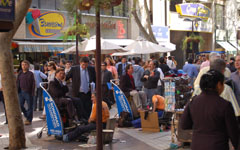 Il y a 2 semaines j'arpentais les avenues piétonnes du centre; Huerfanos, Ahumada, Estado. Du lundi au vendredi des milliers de personnes se croisent d'un pas alerte, sous l'oeil indifférent de millier d'autres qui sont arrêtés, debout ou assis sur des bancs, faisant commerce ou discutant. Une vraie fourmilière humaine qui commence à bouger vers les 8 heures du matin, qui va en s'amplifiant au long de la journée jusqu'au soir.