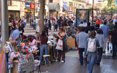 Il y a 2 semaines j'arpentais les avenues piétonnes du centre; Huerfanos, Ahumada, Estado. Du lundi au vendredi des milliers de personnes se croisent d'un pas alerte, sous l'oeil indifférent de millier d'autres qui sont arrêtés, debout ou assis sur des bancs, faisant commerce ou discutant. Une vraie fourmilière humaine qui commence à bouger vers les 8 heures du matin, qui va en s'amplifiant au long de la journée jusqu'au soir.
